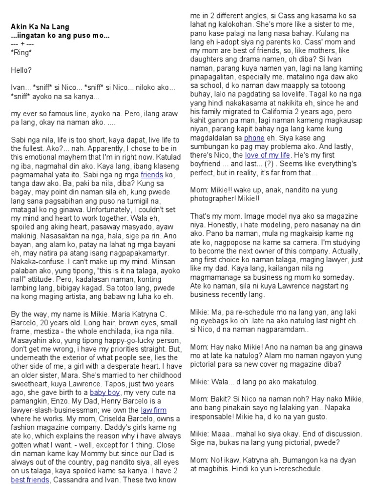 Lalaking nghahanap ng butas para magaway at hiwalayan ka. Ikaw ay isang manlalakbay at sa isang bansa sa kanluran na iyong napuntahan ay nagsaliksik ka ng kanilang mitolohiya. 6-23 Kung lagi mong gagamitin ang kakayahang ito sa lahat ng lalaking nakikilala mo baka isipin ng marami na flirt ka. Muling dumagsa ang maraming tao at tulad ng kanyang palaging ginagawa silay kanyang tinuruan.